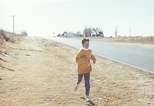 Christmas vacation - running off energy after misbehaving in the car.