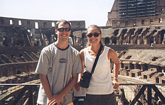 Braden and Brinne inside the Colosseum in Rome, Italy. (August, 1999)