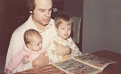 Braden and Brinne teaching Dad to read.